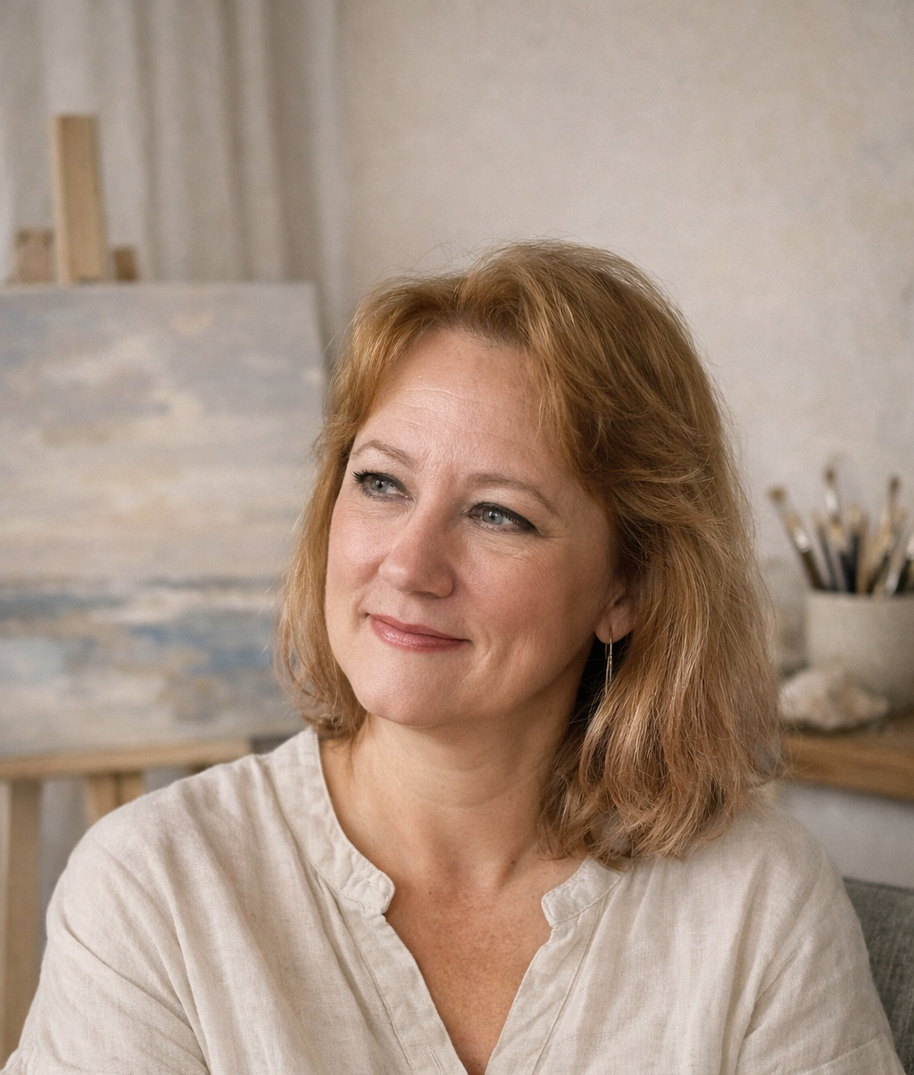 I paint seascapes from memory, guided by intuition, light, and the quiet energy of Bornholm.